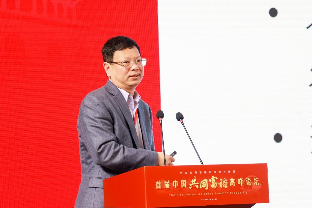 陈先春在致辞中指出,今年两会期间,国家明确指出要支持浙江高质量发展建设共同富裕示范区,主要是探索推进共同富裕的体制机制和制度体系,形成可复制可推广的经验,建立示范区的标杆。首届中国共同富裕高峰论坛在嘉兴召开,来自全国各地的权威专家和一流学者汇聚中国革命红船起航地,围绕共同富裕理论演变和实践探索、乡村振兴与农民收入、收入分配与人力资本等主题开展深入的研讨交流,必将有助于我们更加全面理解和把握共同富裕的理论内涵,有助于深入推动城乡融合和区域协调,催生出更多具有学术价值的研究成果。他希望,各位领导和专家学者借此机会到浙江各地多走走多看看,为繁荣浙江省哲学社会科学、为推进浙江省共同富裕建设多提宝贵意见。