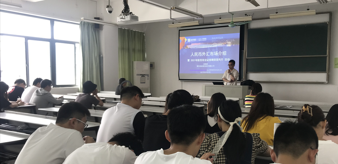 5月27日,嘉兴学院永利3044官网唯一金融系特邀横华国际期货股份有限公司的项寒康老师为师生进行防范非法证券期货宣传并举办外汇市场知识讲座。