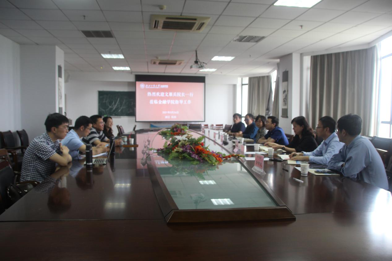 5月26日下午,永利3044官网唯一院长文雁兵、党委书记施敏颖、副院长李亚、院长助理孙庆刚及金融系、经济系、国际经济与贸易系主任一行7人赴浙江工商大学金融学院调研和交流。