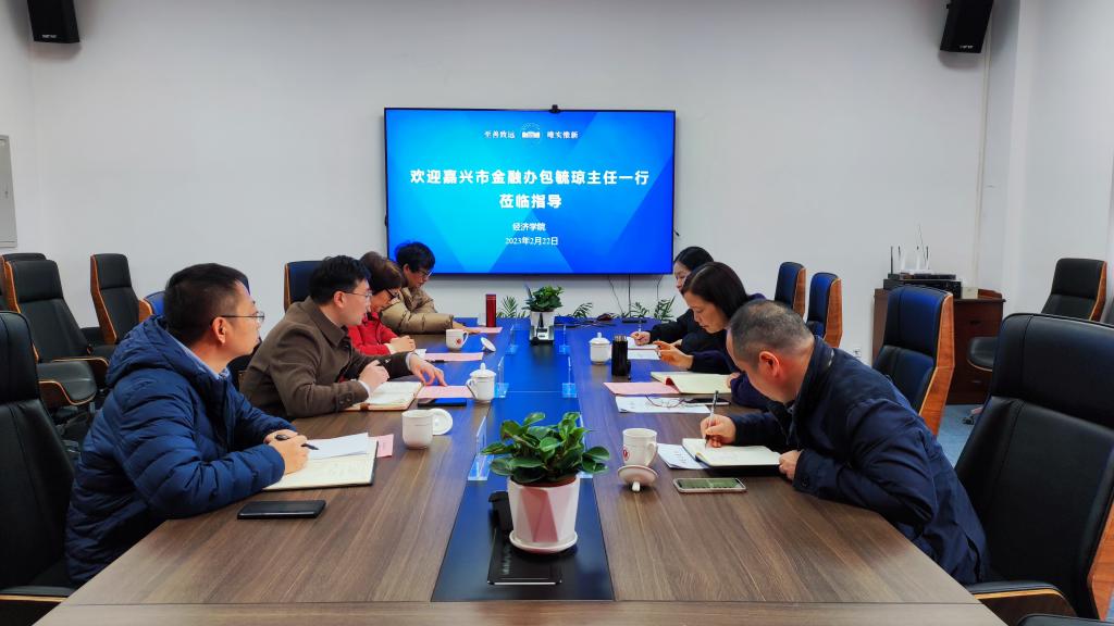 2月22日上午,嘉兴市金融办党组书记、主任包毓琼一行来我院指导和交流。院长文雁兵教授、副院长孙庆刚教授出席座谈会。