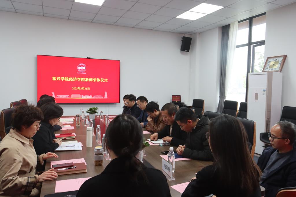 荣退仪式上播放了由学院学生精心为两位退休老师录制的祝福视频。特别令人感动的是,一位闻讯而专程赶来现场的校友,现就职于浙江泰隆商业银行股份有限公司嘉兴分行的项斌主任,为两位退休老师送上了鲜花和祝福。