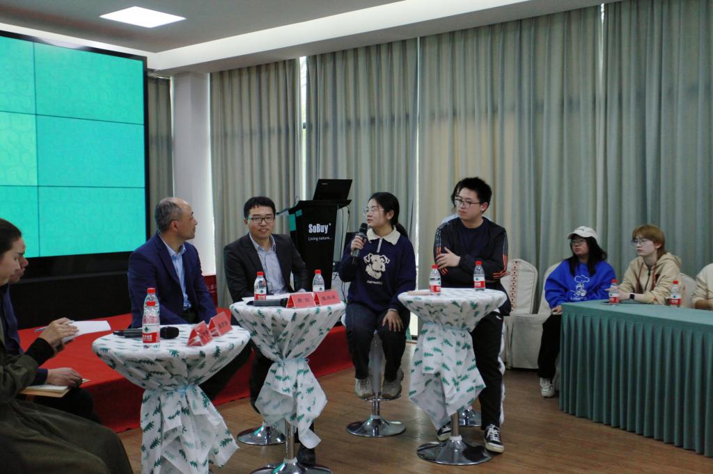 在互动环节中,师生们抛出心中的疑问,周剑董事长、盛亦清总经理和吴叶青经理耐心地为他们答疑解惑。老师们都心系着学生们未来的发展和就业,学生们也都提出自己独到的见解和观念。游学会不仅搭建了一个良好的学习平台,让学生尽早开始自己的职业规划,同时也加强了校企沟通与交流,共同培育优秀人才。