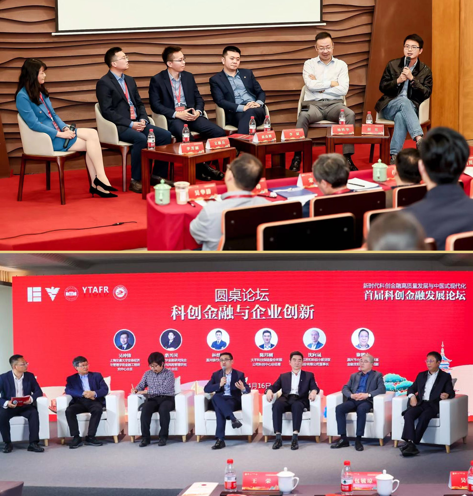 在圆桌论坛环节,上海交通大学安泰经济与管理学院金融工程研究中心主任吴冲峰、浙江大学金融研究院金融创新与风险管理研究中心主任骆兴国、嘉兴银行行长助理林烨焓、太平科技保险股份有限公司科创中心总经理陈玮刚、浙江君和科创小额贷款股份有限公司董事长沈向晟、嘉兴市小微企业信保基金融资担保有限公司副总经理徐耀中等6位专家围绕科创金融与企业创新、科创金融人才等方面进行了交流与讨论。