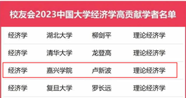 近日,全国第三方大学评价机构艾瑞深校友会网发布《校友会2023中国高贡献学者完整名单》,全国高校共有潘建伟、施一公、张伯礼、林毅夫、刘海峰等6917名杰出学者上榜,分布在524所高校,涵盖12个学科门类的98个一级学科,我院卢新波教授入选理论经济学类高贡献学者榜单。