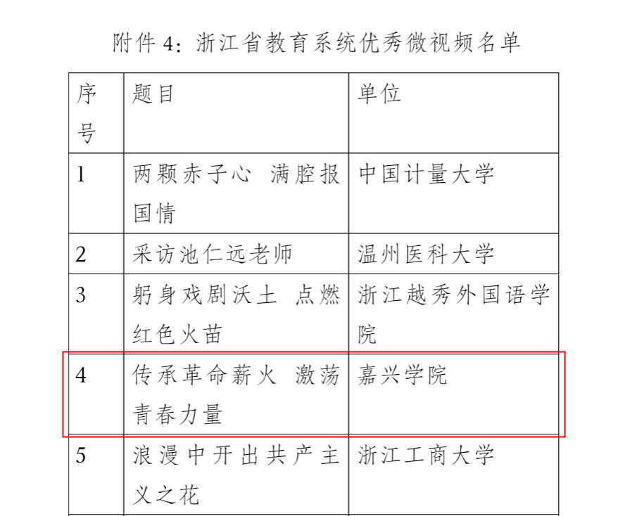 近日,浙江省教育厅关工委公布了2023年“读懂中国”活动的评选结果,由我院关工委提交的微视频作品《传承革命薪火,激荡青春力量》(作者:经济学专业刘嘉兴、谢梦莹、陈嘉敏等)获得“浙江省教育系统优秀微视频”奖。作品讲述了嘉兴市新四军历史研究会宣讲团副团长张红宇女承父业,薪火相传,在父亲的耳濡目染下,在本职岗位上建功立业,退休后又继续发挥余热,开展“沉浸式”教学,到大中小学校、社区、老年大学等开展红色传承工作,把党史故事讲到了青少年心坎上的动人事迹。