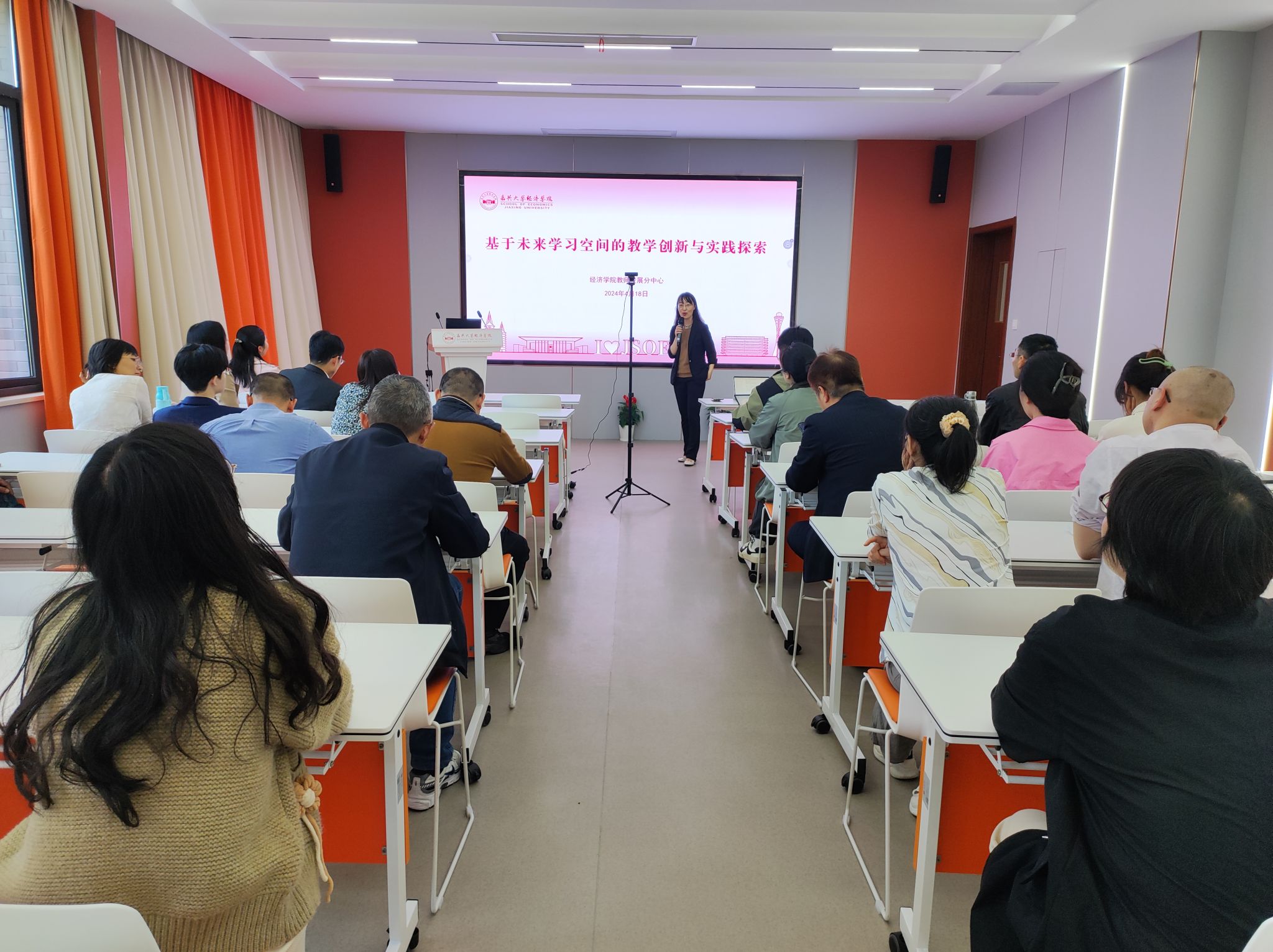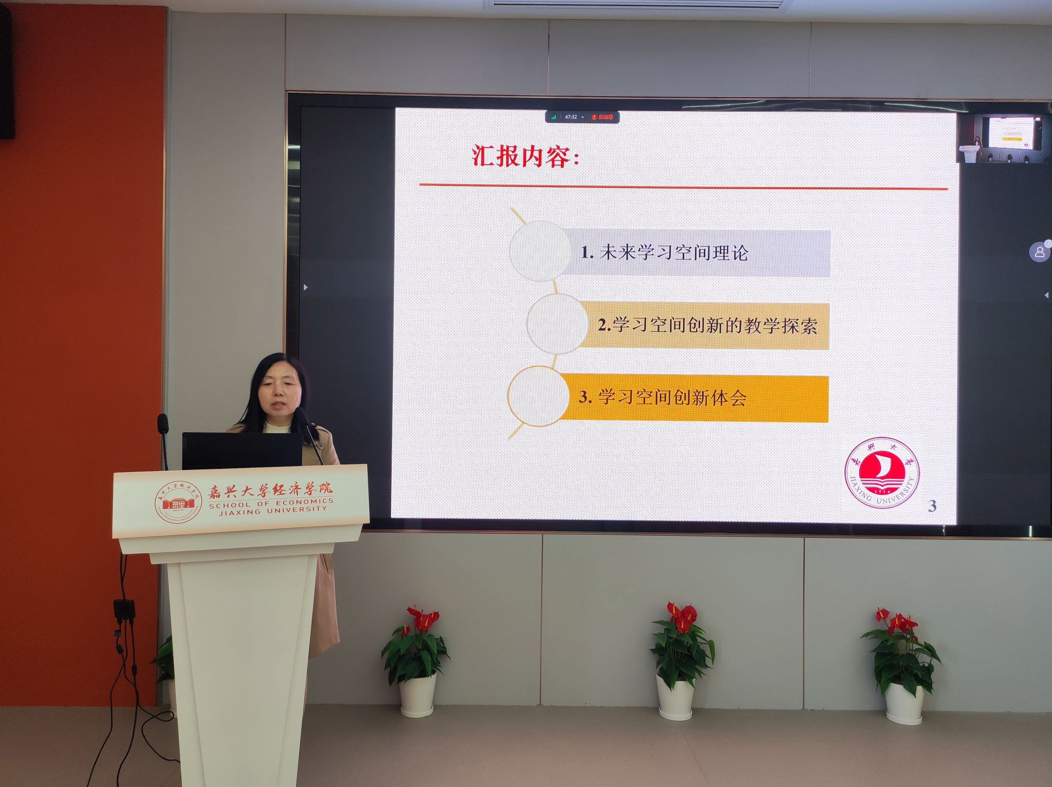 刘晓红老师以省一流课程《微观经济学(英)》和《公司经济学》为例,分享了基于未来课堂图景、动态化教室和多元空间融合理论的教学改革探索,以及将学习空间创新融入课堂教学组织与设计的经验与体会。