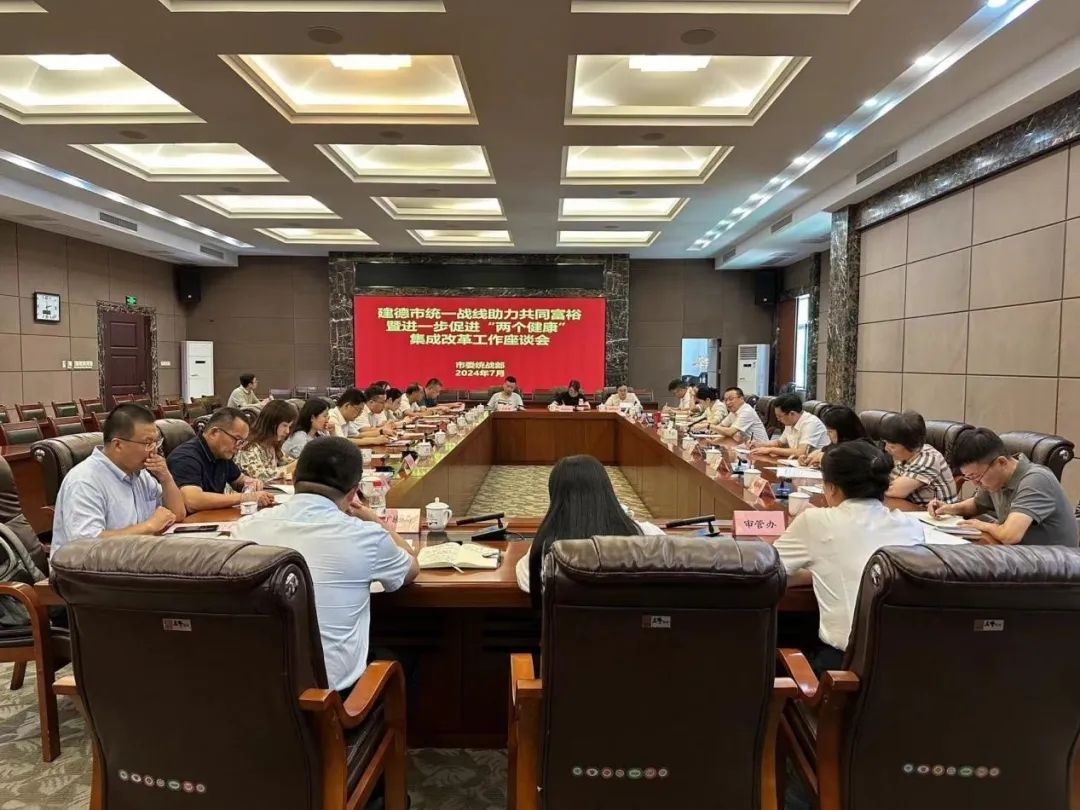 7月17日,永利3044官网唯一与中共建德市委统战部联合召开了建德市统一战线助力共同富裕暨进一步促进“两个健康”集成改革工作座谈会。会议主要围绕县域亲清政商关系开展了交流与研讨,旨在为构建健康、透明、高效的县域政商关系提供政策建议和实践路径。座谈会由建德市委常委、统战部长郑泽挥主持,建德市委办(改革促进中心)、市发改局、市商务局、市工商联等共16个市委市政府相关职能部门参与座谈和交流发言。我院院长文雁兵、党委书记蔡运男、副书记陈晶晶、院长助理胡进、国际经济与贸易系主任卓乘风以及共富院常务副院长顾骅珊参加。