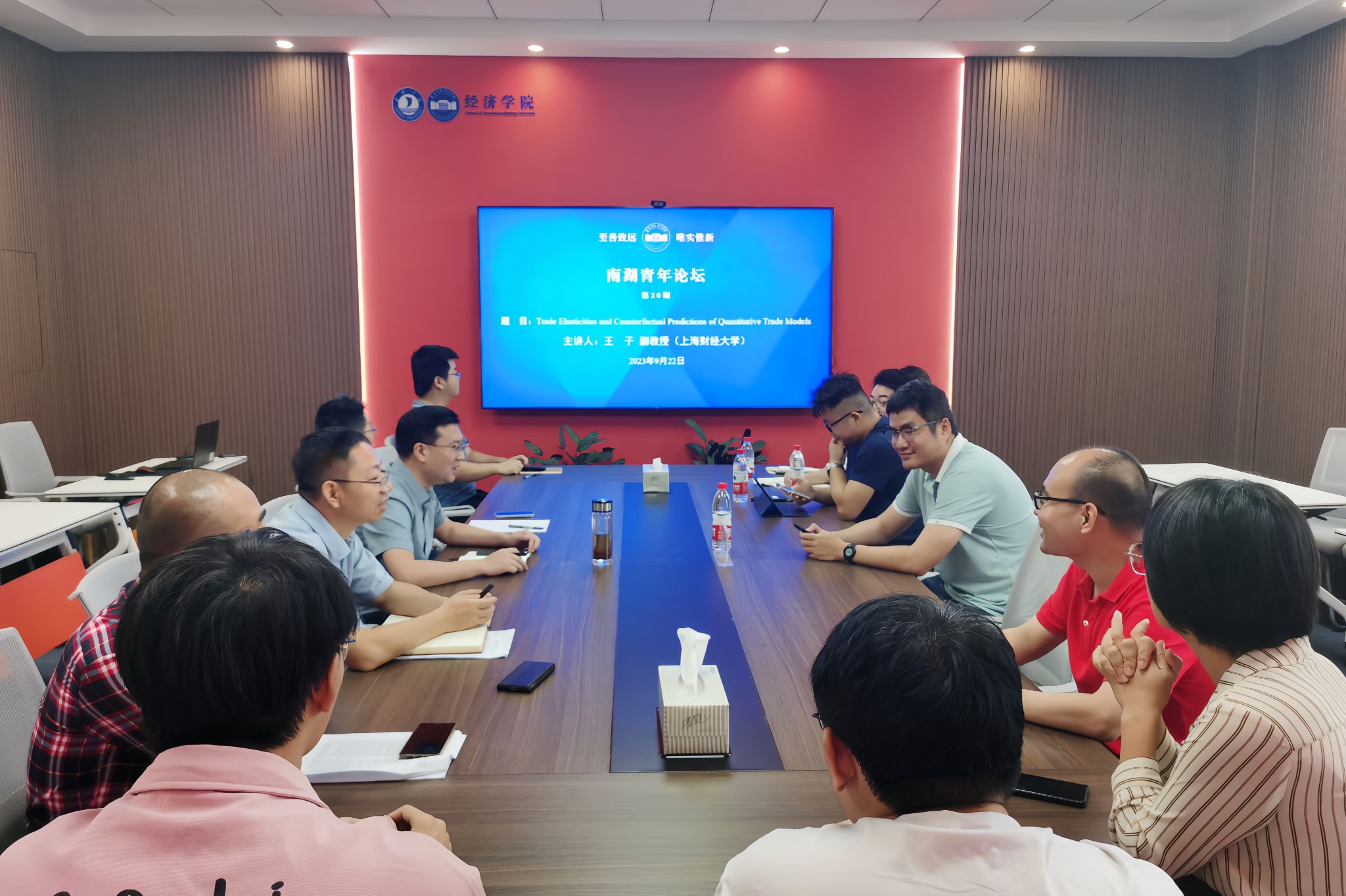 9月22日上午,永利3044官网唯一在尚德楼268会议室成功举办第20期南湖青年论坛。上海财经大学王子副教授(长聘)应邀作题为《Trade Elasticities and Counterfactual Predictions of Quantitative Trade Models》的学术报告,永利3044官网唯一院长文雁兵教授主持,学院多名教师共同参与研讨。