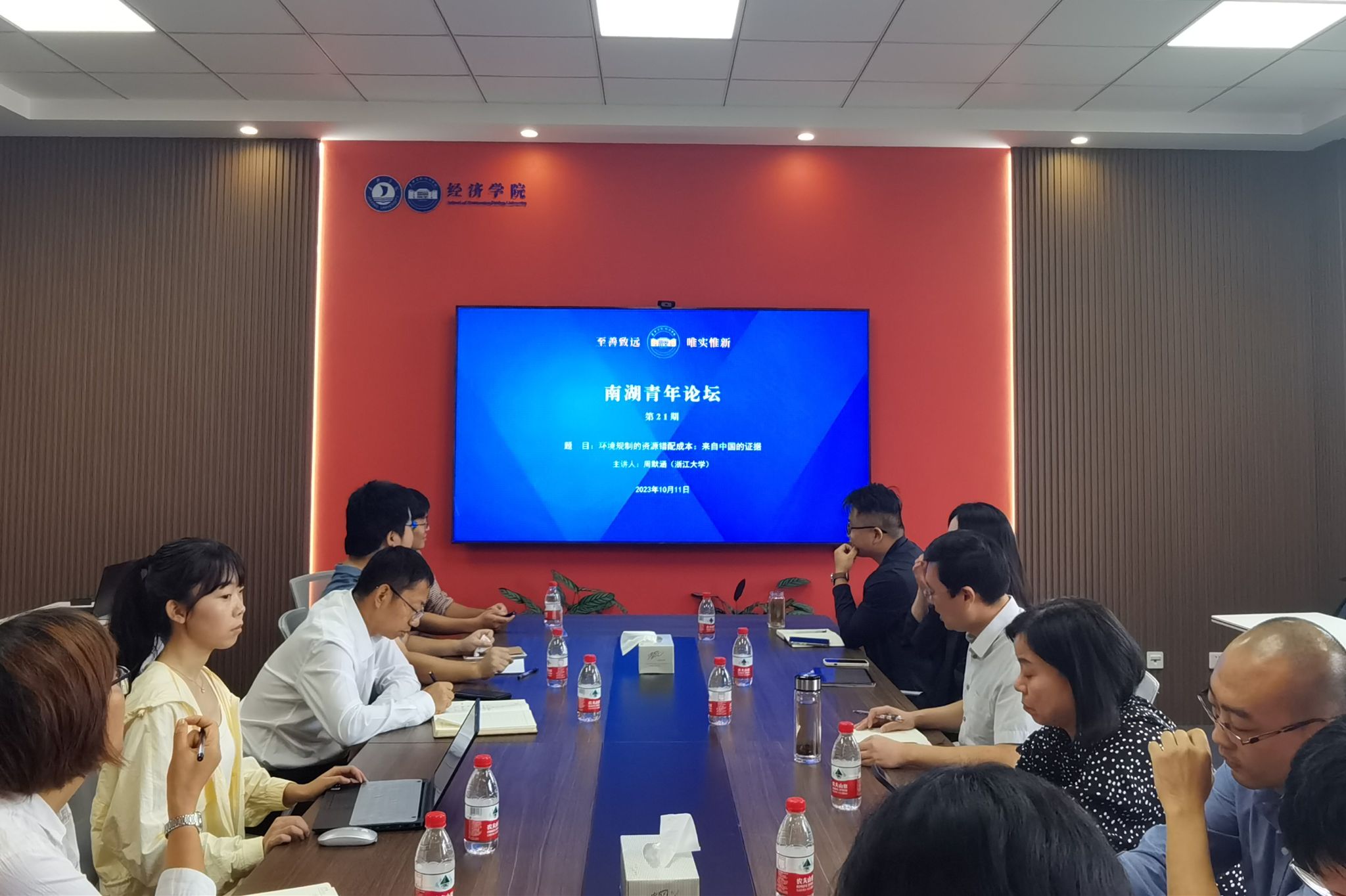 10月11日上午,永利3044官网唯一在尚德楼268会议室成功举办第21期南湖青年论坛。浙江大学百人计划周默涵研究员应邀作题为《The Misallocation Cost of Inefficient Environmental Regulation: Evidence from China》的学术报告,永利3044官网唯一院长文雁兵教授主持,学院多名教师共同参与研讨。