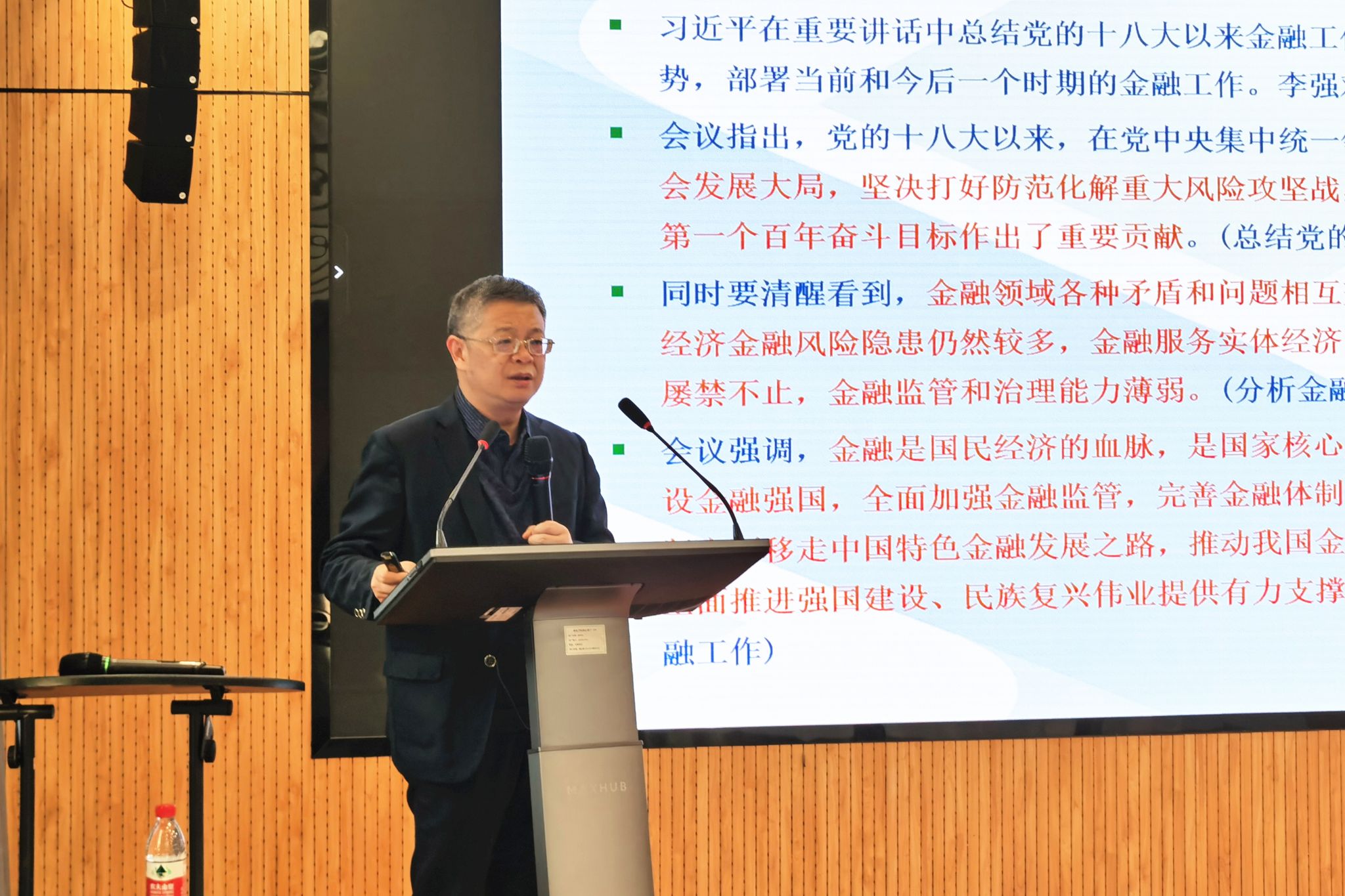 11月28日下午,由嘉兴学院永利3044官网唯一、嘉兴市金融学会、嘉兴市高层次人才联谊会联合主办的南湖金融讲堂第2讲在嘉兴学院融信楼325举办。中国金融学会理事、中国人民银行浙江省分行货币政策咨询专家、浙江大学金融研究所所长、博士生导师王维安教授应邀作题为《加快建设金融强国 推动金融高质量发展——兼中央金融工作会议解读》的报告,永利3044官网唯一党委书记施敏颖教授主持,来自中国人民银行嘉兴市中心支行、嘉兴银行、浙商银行、禾城农商银行等实务界专家和永利3044官网唯一师生百余人参加。