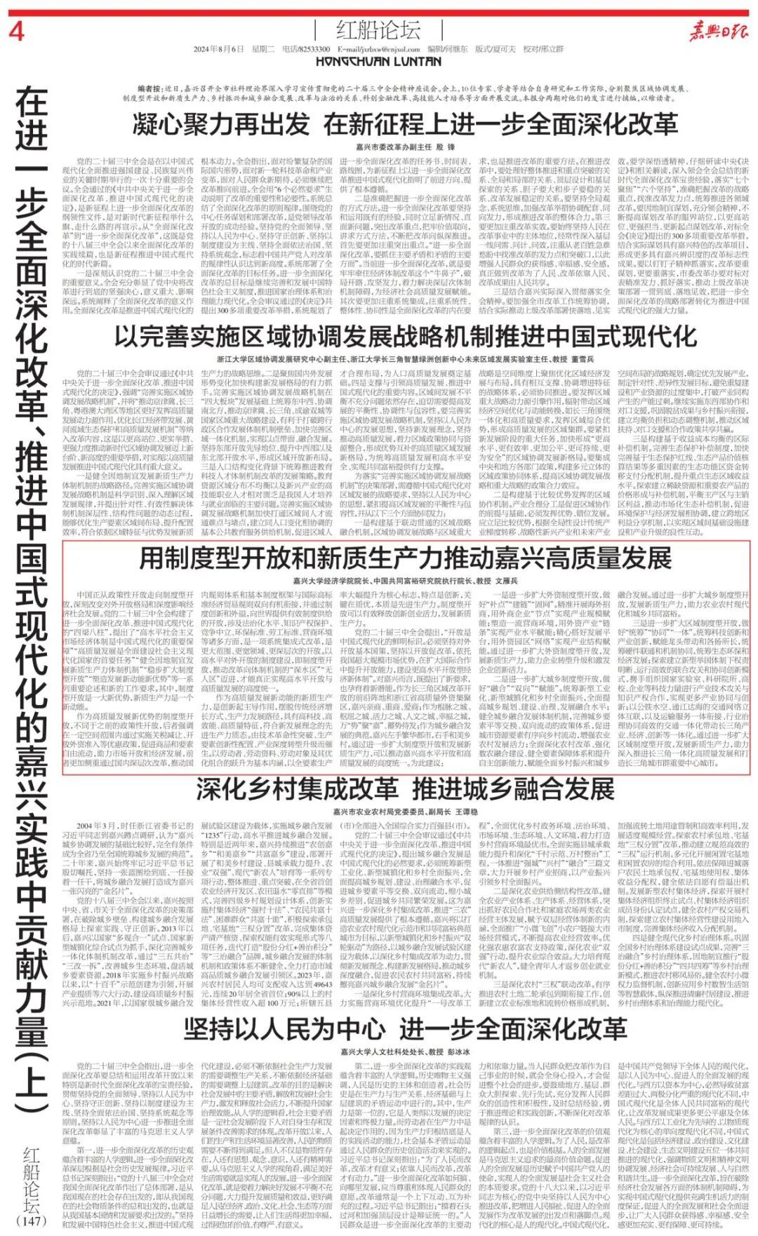 党的二十届三中全会提出“开放是中国式现代化的鲜明标识,必须坚持对外开放基本国策,坚持以开放促改革,依托我国超大规模市场优势,在扩大国际合作中提升开放能力,建设更高水平开放型经济新体制”。对嘉兴而言,既提出了新要求,也孕育着新潜能。作为长三角区域改革开放的前沿阵地和浙江省高质量外资集聚区,嘉兴亲商、重商、爱商;作为根脉之城、枢纽之城、活力之城、人文之城、幸福之城,万“势”聚“嘉”,蓄势待发;作为统筹城乡发展的典范,嘉兴左手繁华都市,右手和美乡村。通过进一步扩大制度型开放和发展新质生产力,可以推动嘉兴高水平开放和高质量发展的高度统一。为此建议: