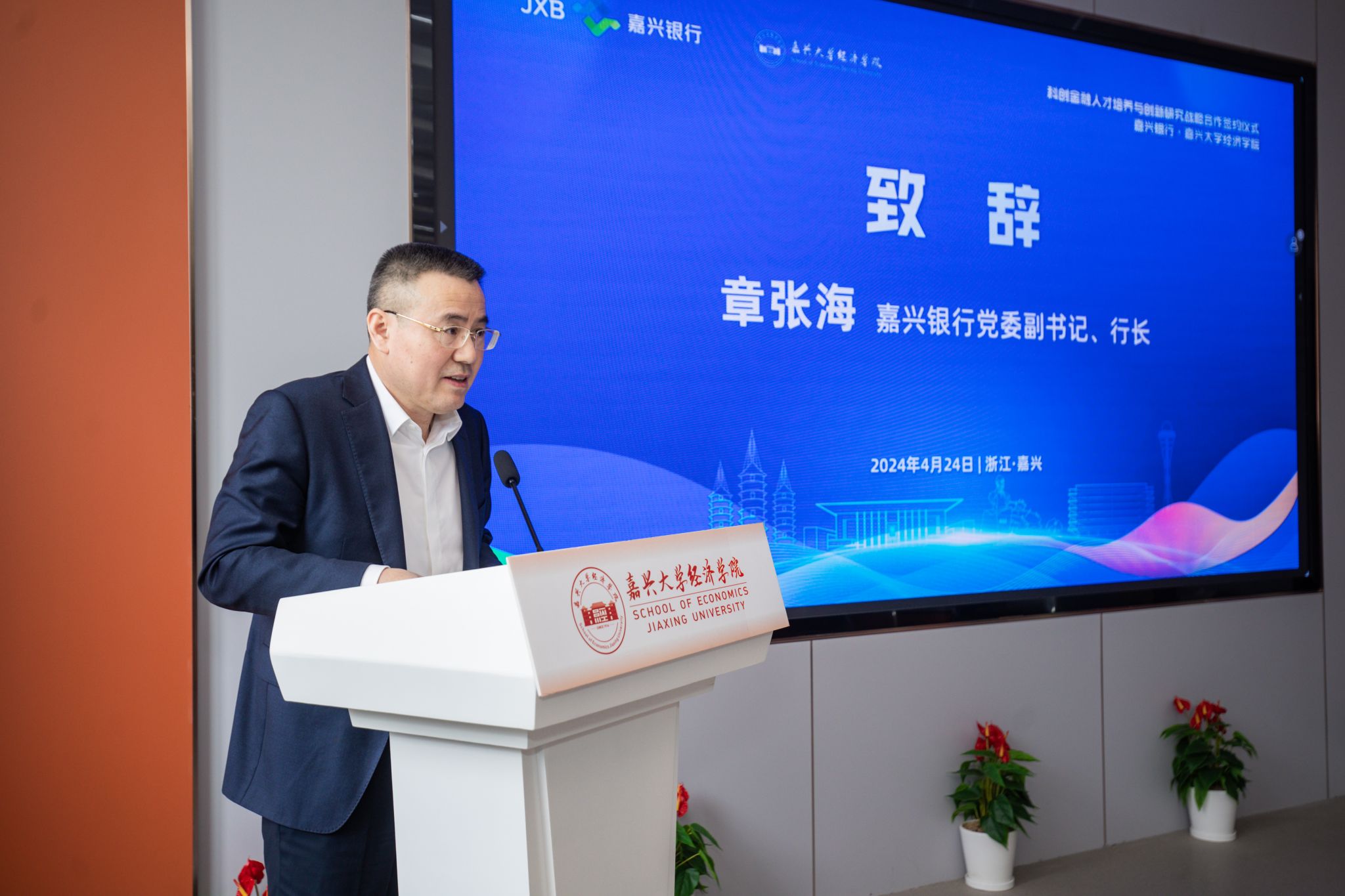 章张海在致辞中表示,嘉兴银行和304永利相近相亲、关系密切、休戚与共、合作深远,通过银校合作聚焦金融人才培养和科创金融研究,主题鲜明、内容丰富、目标明确、抓手有力,是双方的再次强强联合,携手推动地方金融创新发展,以科创金融赋能新质生产力,为长三角科创金融事业的蓬勃发展贡献更多智慧与力量。通过此次合作,也将会助力嘉兴银行“科创金融特色银行”全面转型发展,为地方高质量发展贡献更多嘉银力量。