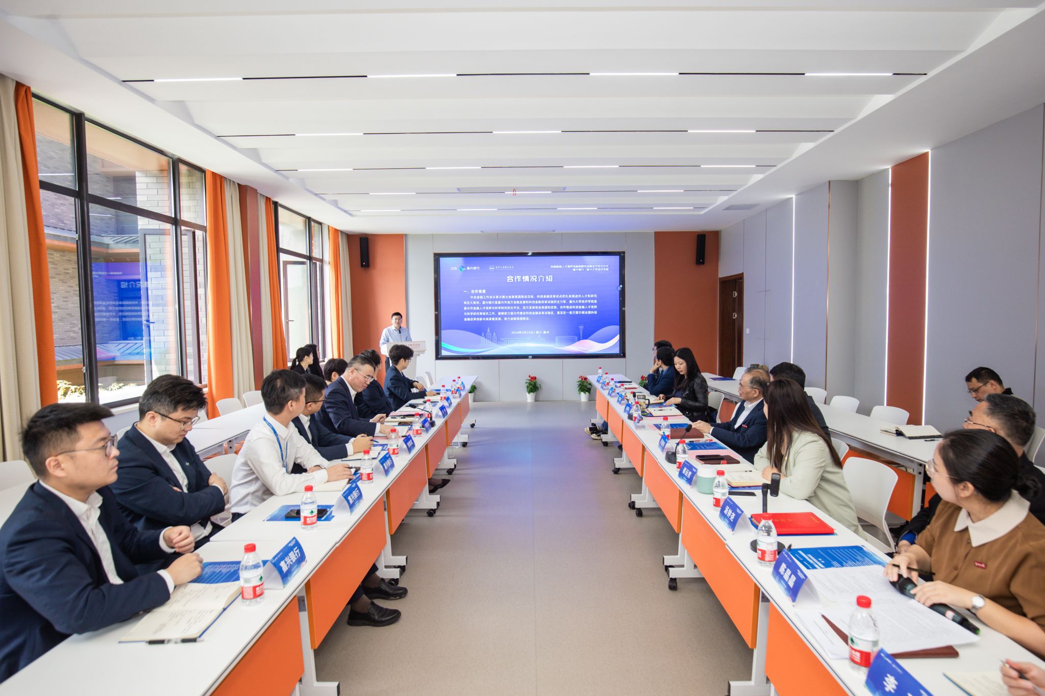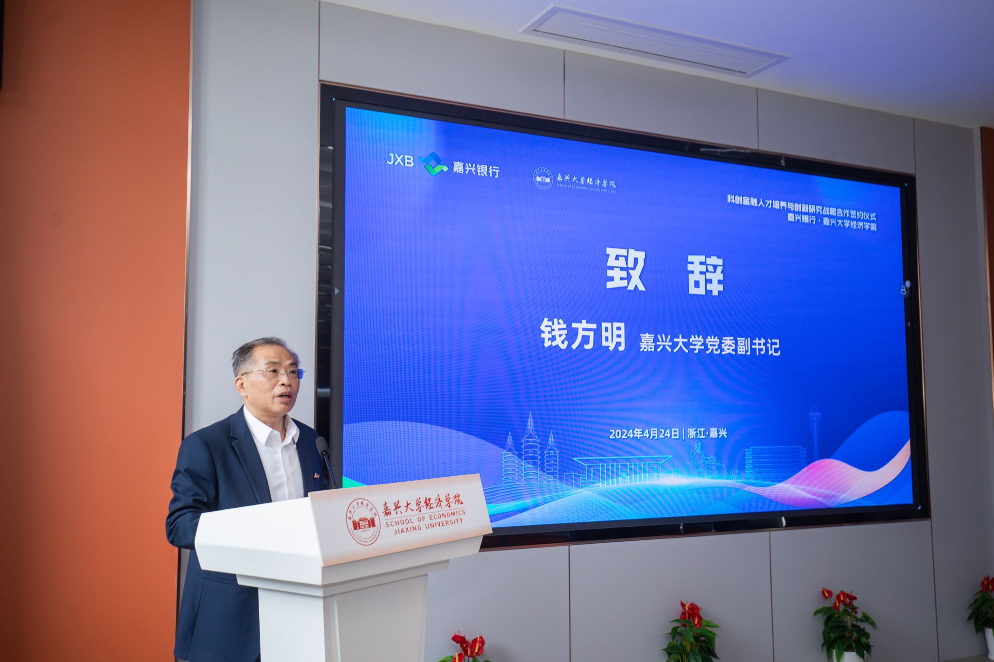 钱方明代表学校致辞,对嘉兴银行一行表示热烈欢迎,对嘉兴银行在学校发展过程中给予的支持表示衷心感谢。他指出,2023年10月,中央金融工作会议首次提出金融强国建设目标,2024年1月16日,习近平总书记在省部级主要领导干部推动金融高质量发展专题研讨班开班式上发表重要讲话强调,坚定不移走中国特色金融发展之路,推动我国金融高质量发展。走中国特色金融发展之路和金融强国建设要做好科技金融、绿色金融、普惠金融、养老金融和数字金融“五篇大文章”,科创金融是科技金融的重要内容,嘉兴作为国家科创金融改革试验区唯一的地级市,被寄予厚望,目标定位是打造长三角科技成果转化高地和科创金融一体化服务基地。嘉兴以红船精神为引领,肩负探路金融支持科技创新,为全国地市级城市推进科创金融改革、服务中国式现代化,打造科创金融“嘉兴模式”的使命。他强调,嘉兴银行是嘉兴市地方金融发展和科创金融改革试验的主力军,永利3044官网唯一是嘉兴市金融人才培养与永利集团的主平台,双方能够发挥各自资源和优势,合作推进科创金融人才培养与永利集团等相关工作,共同助力嘉兴市建设科创金融改革试验区,为嘉兴建设长三角城市群重要中心城市和共同富裕典范城市增添新动能、做出新贡献,助力金融强国建设。