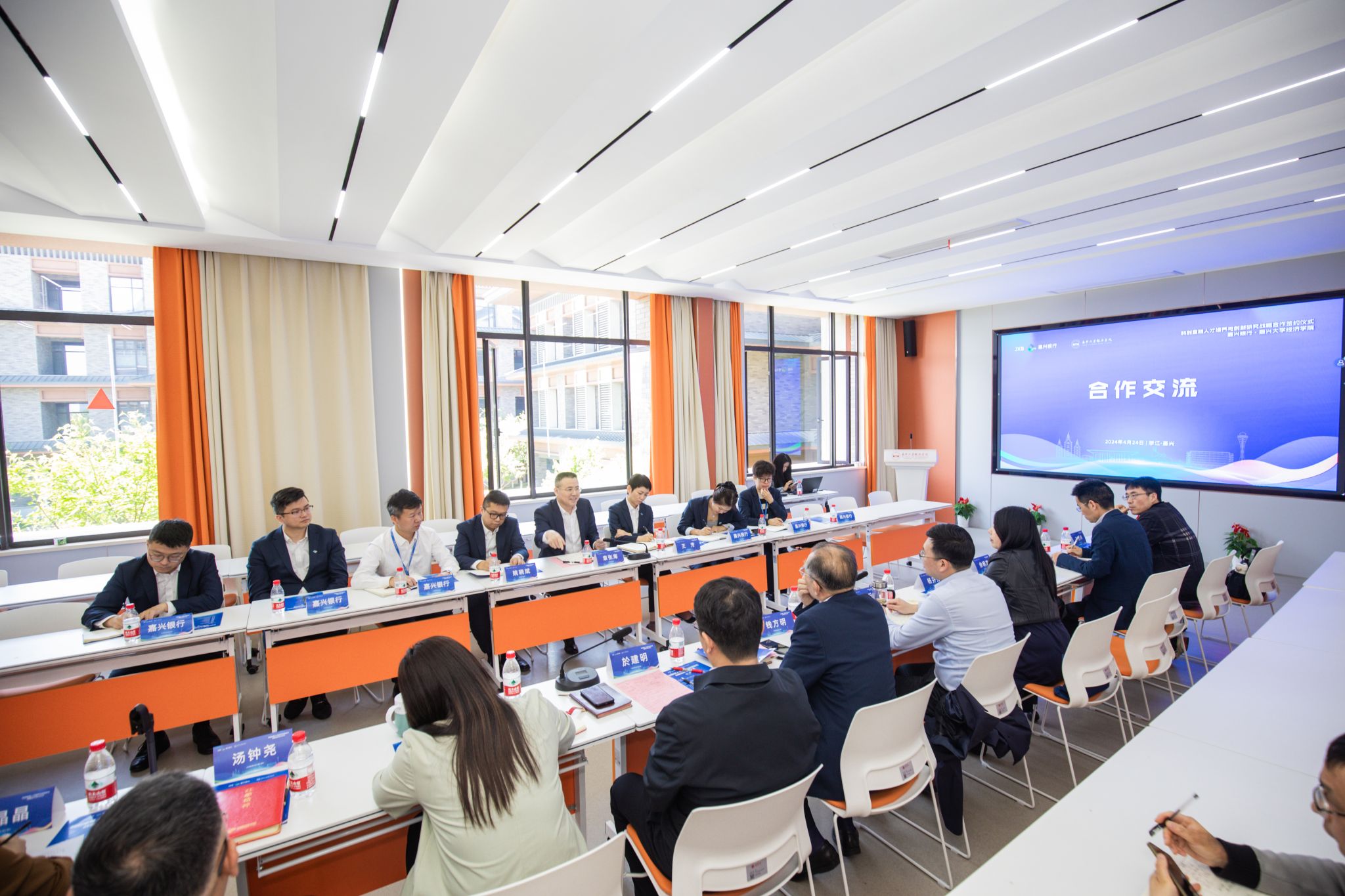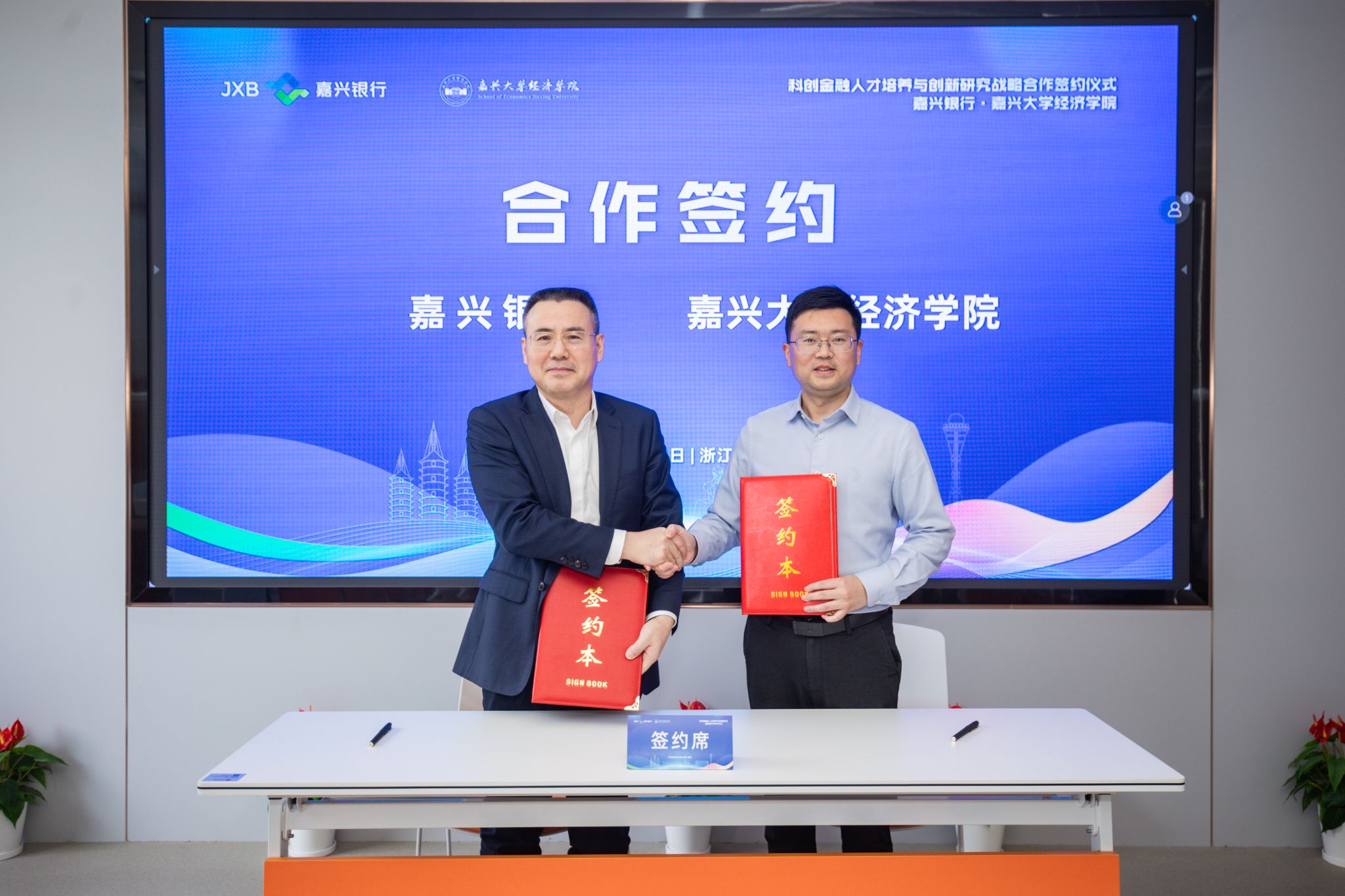 学院院长文雁兵和嘉兴银行党委副书记、行长章张海代表双方单位共同签署《嘉兴银行和永利3044官网唯一有关金融人才培养和科创金融研究合作协议》。