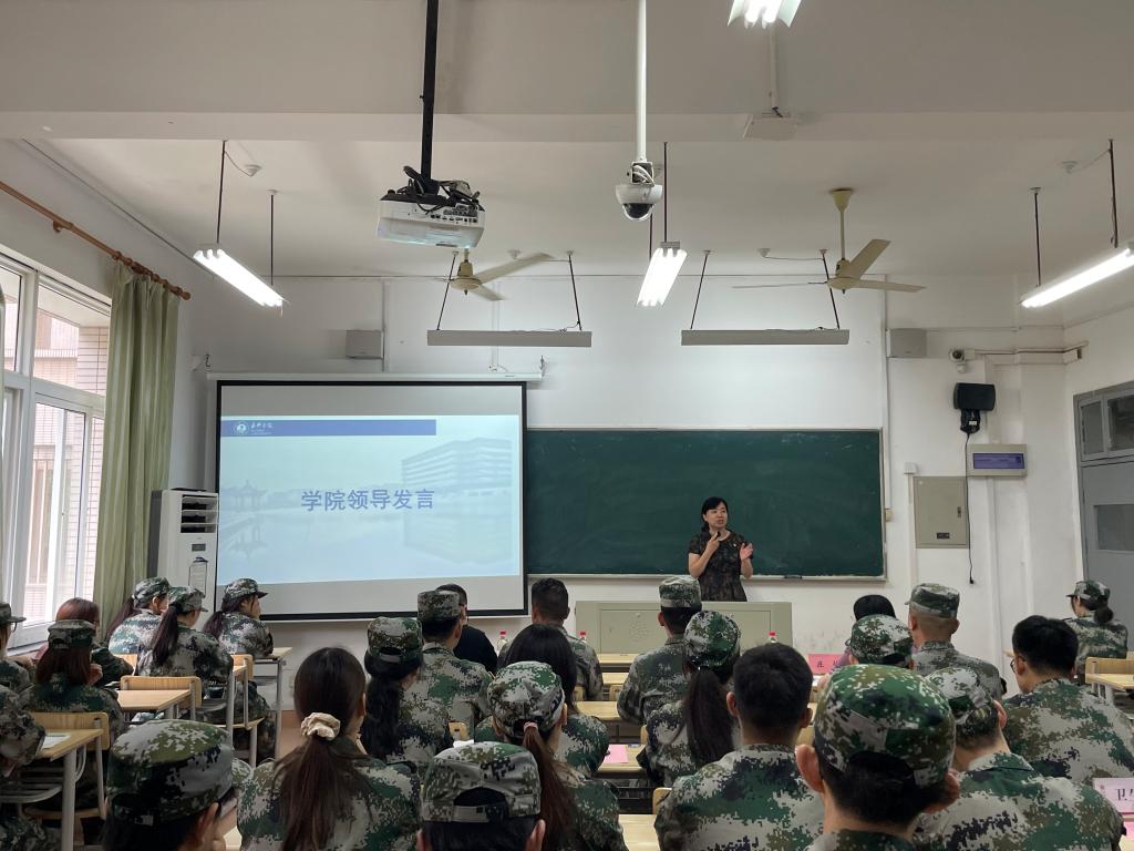 会上,九连连长朱勤飞作为教官代表发言。他表示将会以良好的军人形象带领大家,以过硬的军事本领引导大家。认真履行教官应尽职责,以身作则,给同学们做好榜样。严格按照学校的军训实施方案组织训练,保质保量完成此次军训工作。希望同学们端正思想,认真对待,服从命令,听从指挥,展现最佳的精神面貌。陈东岗作为指导员代表,向同学们讲解了学校军训工作实施方案的重点,包括学生军训日志、军训行为细则、军训优秀学员评选办法等。他着重强调在训练中要做好预防保护措施,学生有不良反应时妥善处理,并及时与现场值班老师反馈。