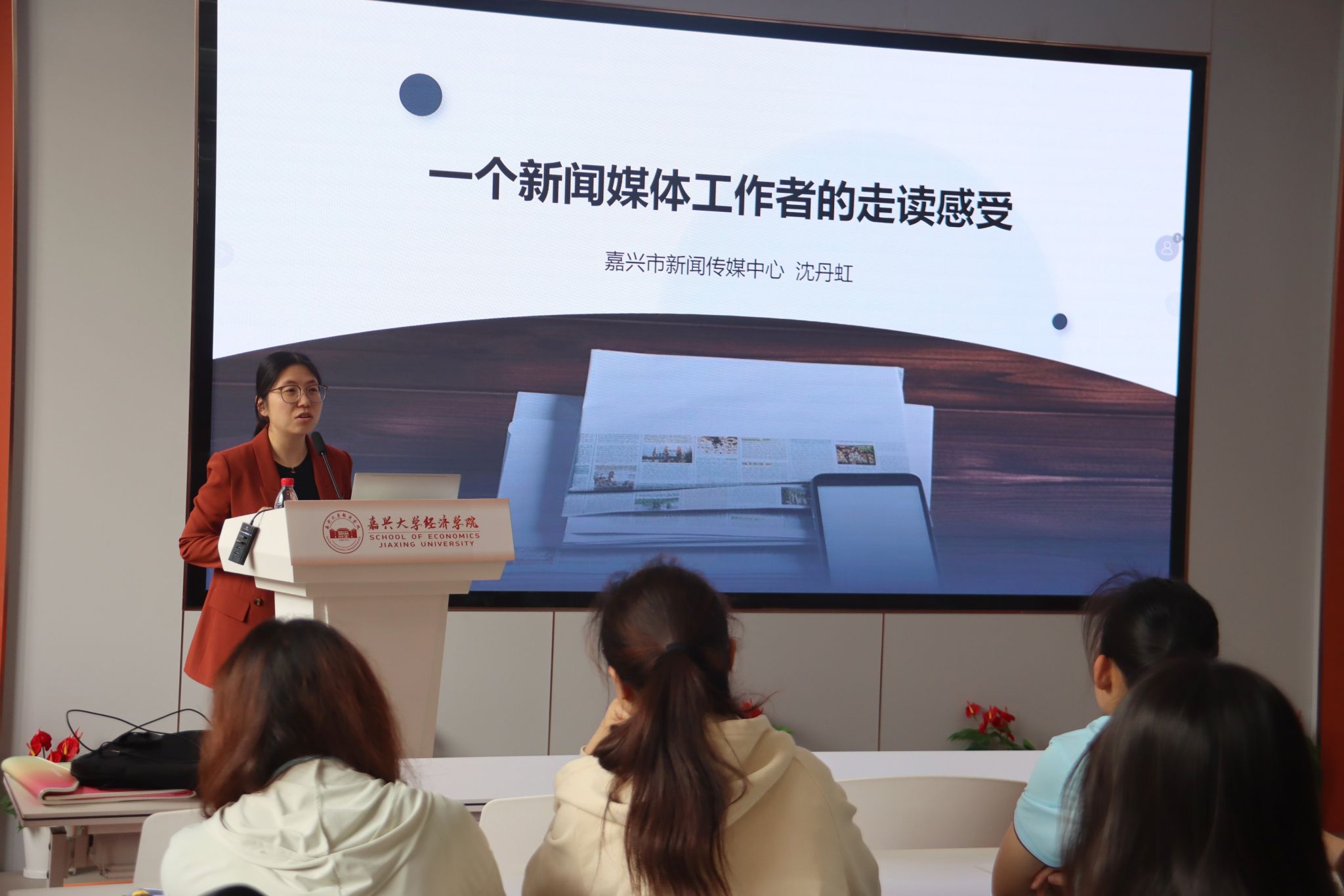春读书,兴味长,磨其砚,笔花香。5月9日下午,永利3044官网唯一“阅读启智・书香润心”读书活动第二讲在学院学术交流中心如期举行,活动邀请了嘉兴市新闻传媒中心日报晚报事业部副主任沈丹虹作《一个新闻媒体工作者的走读感悟》分享,思政辅导员、院团委学生会全媒体中心成员、第三期青马班学员等70余人参加。
