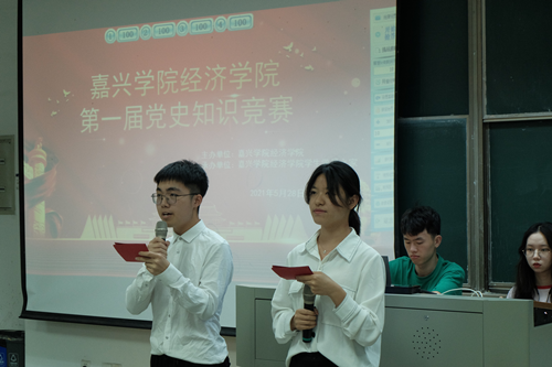 施敏颖致开幕词。她指出,2021年是建党百年,作为南湖畔、红船旁的嘉院学子,要成为党史学习的楷模,希望同学们以赛促学,激发学习党史知识的热情,提高党史学习的广度和深度,真正做到“学史明理、学史增信、学史崇德、学史力行”。她强调,不仅要自己学党史、悟初心,也要带动身边的同学一起学,将中国共产党的革命奋斗历程、革命精神内化于心、外化于行;同时要谨记习近平总书记的嘱托,立大志、明大德、成大才、担大任,努力成为堪当民族复兴重任的时代新人。