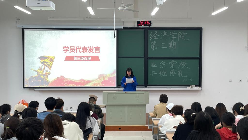 在庄严的国歌声中,开班典礼拉开序幕。通过前期的资格筛查、自主报名、团支部推荐,本期党校共吸纳了本科生共计80余位学员参加,党校班主任李胜宣读本期党校学员名单,并向学员们介绍了党校纪律、课程安排。金融211杨颖诺作为学员代表,从青年大学生学党史悟初心的角度出发,号召大家从思想、行动、作风等方面不断向党组织靠拢,要不负时代、不负韶华、不负党和人民的殷切期望,在担当中历练,在尽责中成长。