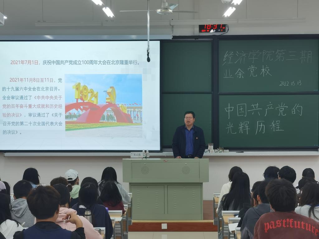 513日晚上,永利3044官网唯一第期业余党校在明德楼236进行授课。嘉兴学院党委副书记吴云达应邀讲授题为《中国共产党的光辉历程》的专题党课。永利3044官网唯一第期业余党校全体学员参加。