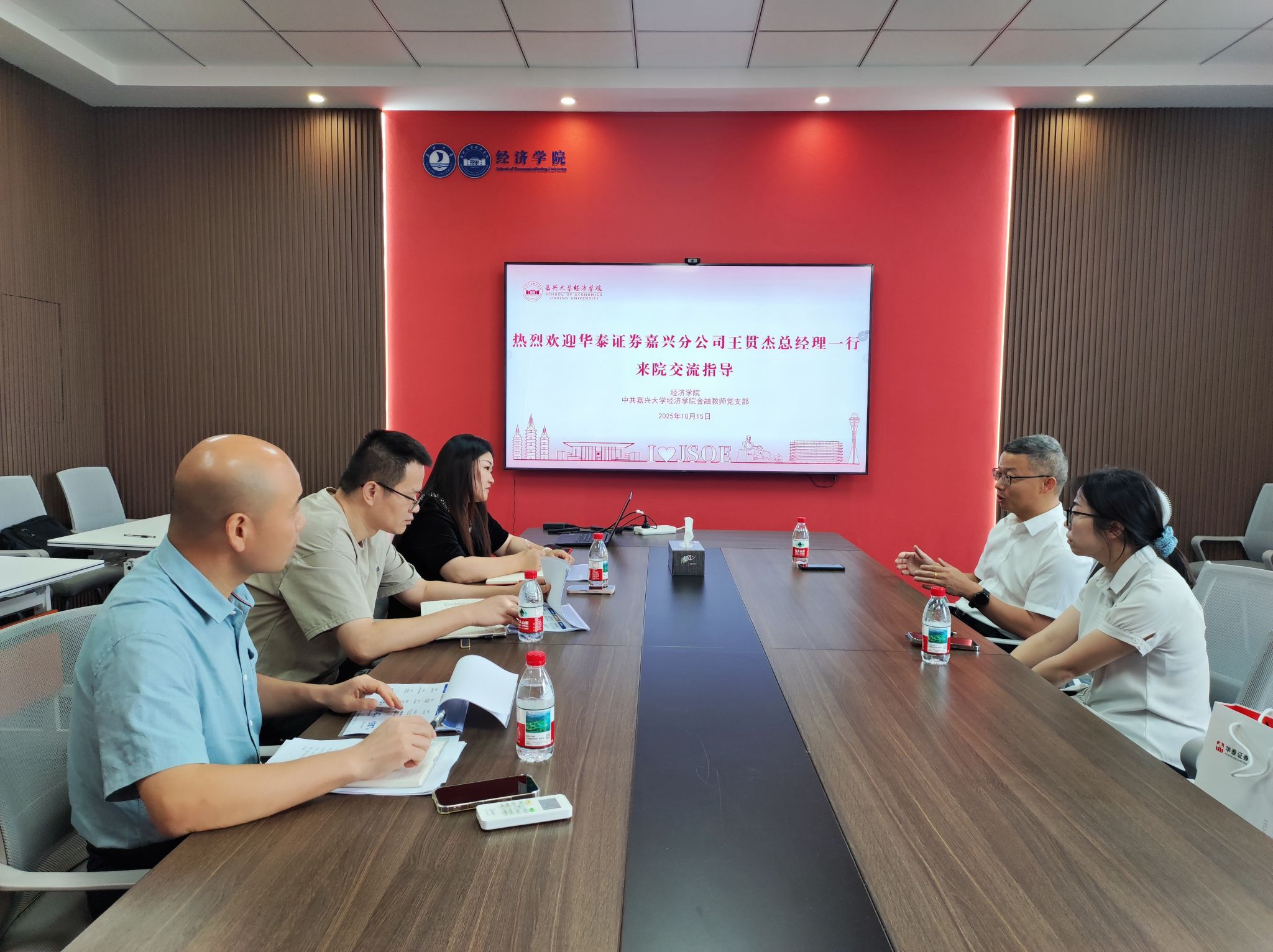 为深化院企合作,探索党建与业务深度融合新路径,2025年10月15日上午,我院金融教师党支部与华泰证券股份有限公司嘉兴分公司举行座谈交流会。华泰证券嘉兴分公司总经理王贯杰、永利3044官网唯一党委书记蔡运男、金融教师党支部副书记张学峰、学院研究生竞赛基地主任钱大可参加座谈。双方围绕人才培养、产教融合、金融实践教学及党建促进业务发展等议题进行了深入探讨。