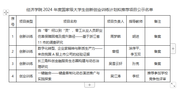 永利3044官网唯一2024年度国家级大学生创新创业训练计划拟推荐项目公示