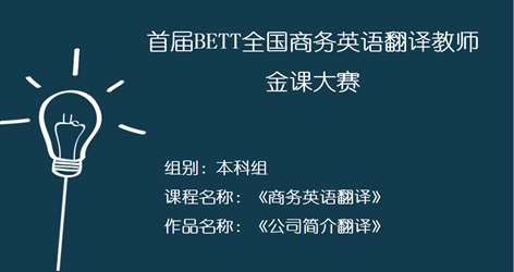 近日,“首届全国商务英语翻译教师金课大赛”公布比赛结果,我校外国语学院申丹教授和邹睿敏老师组建的团队喜获比赛二等奖。该赛事由全国商务外语考试办公室和全国商务外语专业委员会举办,旨在更好地推动全国商务英语翻译教育改革,促进高校外语教学发展,培养更多国家需要的国际化复合型人才。此次商务英语翻译教师金课大赛受到了各地高校教师的广泛关注和积极参与,我院教师团队在200多件参赛作品中脱颖而出获得二等奖,既是教师对商务英语翻译课程教学的经验总结和探索创新,也促进了教师专业素养和教学技能的提升。在历届全国大学生商务英语翻译竞赛中,外国语学院的学生们也曾取得了全国决赛特等奖、一等奖等优异的成绩。商务英语翻译教学在以赛促学、赛证结合、师生共赛的教学模式指导下取得了良好的教学成效。