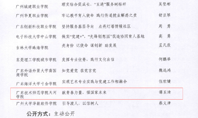 近日,从广东省委教育工委获悉,我校外国语学院党总支书记谭玉清同志牵头撰写的《献青春力量强国家未来》的基层党组织书记工作案例,在全省高校上报的9个主题512个案例中荣获三等奖。