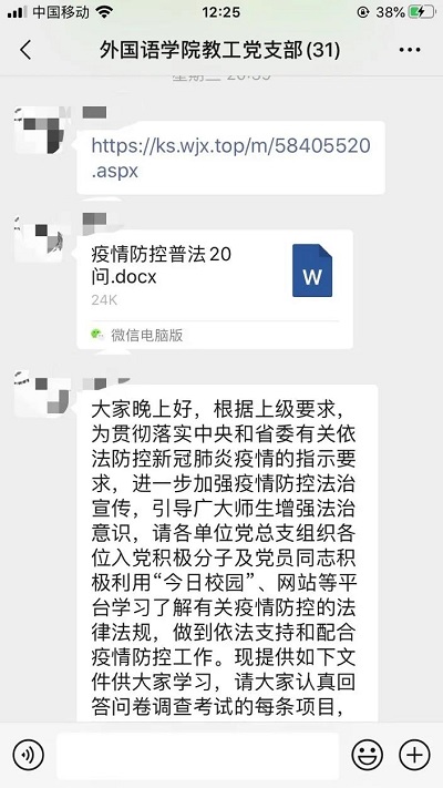 外国语学院党总支开展《关于疫情防控全民公益普法行动问卷调查》
