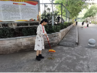 活动开始前,党员服务中心的工作人员对志愿者们进行分组并分发清洁工具,随后带领志愿者们前往划分好的区域进行打扫,确保高效有序地进行清扫工作。