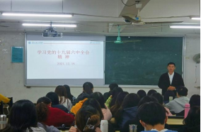 12月17日晚,外国语学院学生党支部于在7栋218课室召开党员大会,学习十九届六中全会精神,刘亮书记和学生党支部干部及2021年第一期、第二期预备党员参与本次会议,张梦瑶同志主持。