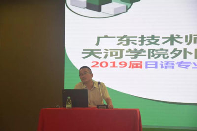 英语系主任冉海涛和日语系主任黄国山,分别针对不同专业本届毕业论文的时间安排、撰写要求做了详细的讲解。并给出了指导性的意见和建议。他们强调毕业论文要注意语言表达能力、学术论文规范和论文的独立见解和创新意识,提醒学子们注重参考文献并根据自己的实际情况,选取不同的背景资料,告诫学子们最重要的是先行研究,不要一昧的模仿,希望学子们能合理安排时间,处理好与导师的关系,顺利完成论文的撰写。