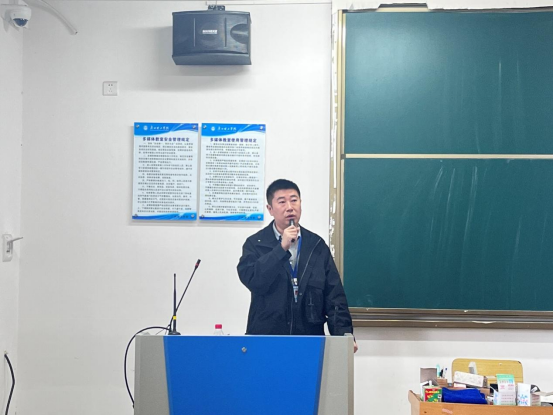 最后,外国语学院党总支副书记蔡俊进行会议总结。他首先感谢了各位老师们对于学院各项工作的支持与帮助,并对接下来的就业工作、评建工作以及学生工作进行了简单的概括,希望班导师、任课老师、辅导员和学生们能够共同努力,做好评建工作。随后,他指出了周一升旗仪式到场率较低的情况,并鼓励各位老师积极参加“我最喜爱的老师”评选活动,多关心学院举办的活动及支持学院各项工作。最后,他通过分享学校发生过的具体事例,引导各位老师多关注学生心理健康,注意教育学生的沟通方法和教学方法。