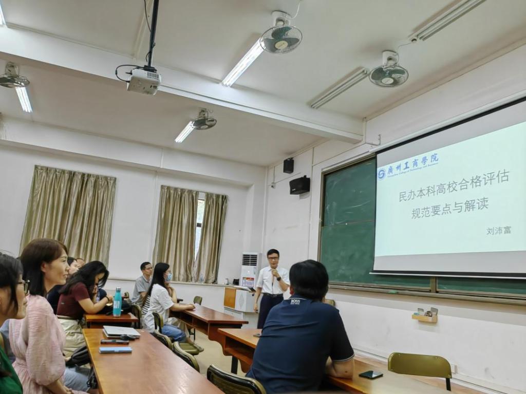 广州工商学院外国语学院院长刘沛富教授,则以其深厚的专业知识和丰富的实践经验,就“民办本科高校合格评估规范要点与解读”进行了深入且全面的讲解。他细致地分析了评估规范的关键要素,为我校参与民办高校的评估工作提供了极具价值的意见。通过刘教授的详尽阐释,与会教师对民办本科高校合格评估的规范有了更加清晰的认识,对如何在教育过程中实践也有了更加明确的方向。