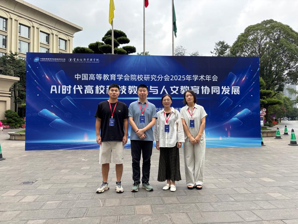 7月12日至14日,由中国高等教育学会院校研究分会与云南经济管理学院联合主办的“AI时代高校科技教育与人文教育协同发展”学术年会在云南隆重召开。广州理工学院外国语学院党总支副书记蔡俊、陈红梅副教授、连缓老师与徐宣老师一行受邀参会,与来自全国各地的专家学者、高校管理者及核心期刊编辑齐聚一堂,共同擘画人工智能浪潮下高等教育融合创新的发展蓝图。
