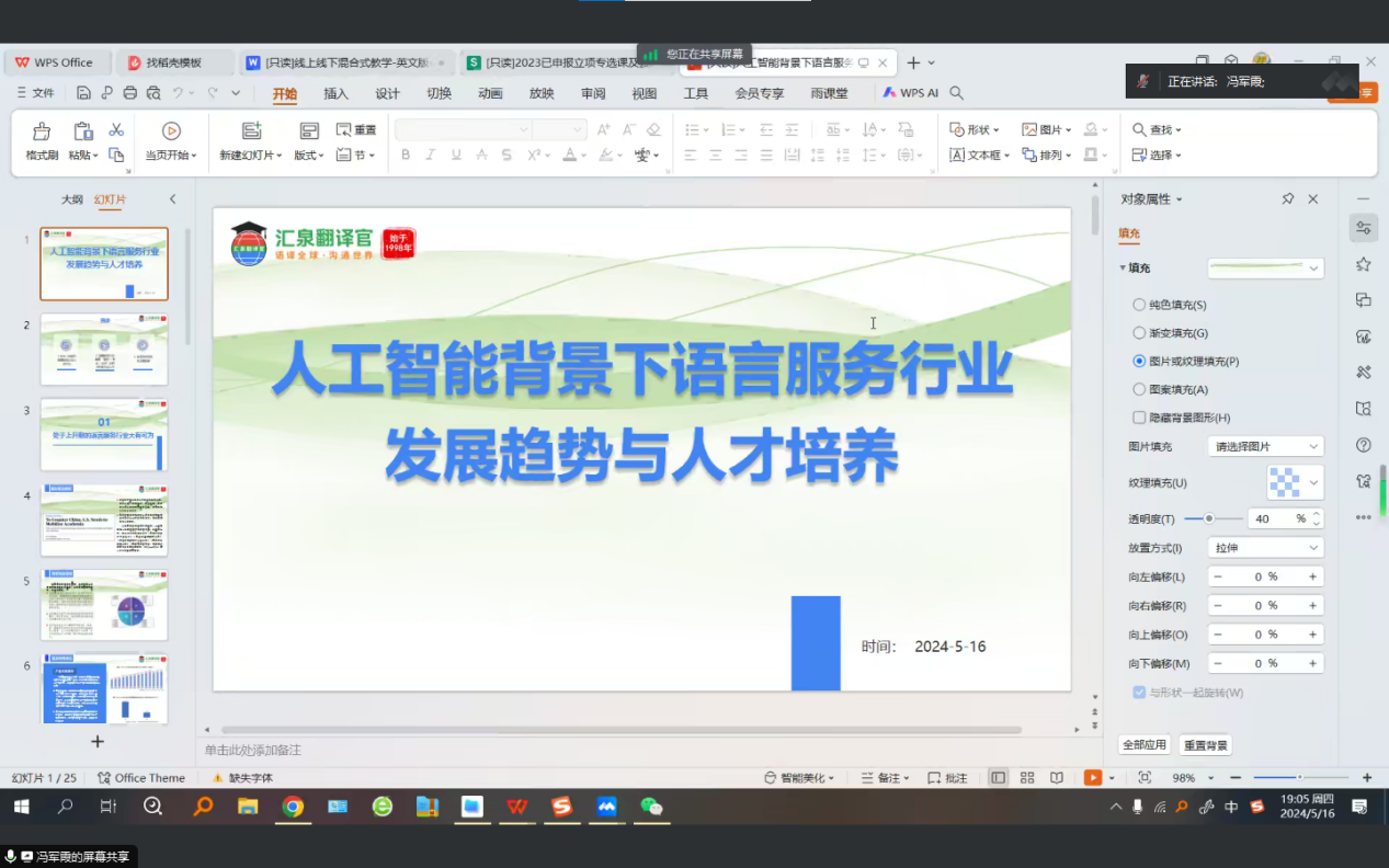 为进一步了解人工智能背景下的语言服务行业的发展,创新和改革外国语学院的人才培养模式,我院于5月16日7:00线上开展“人工智能背景下的语言服务行业的发展与外语人才培养”主题讲座。此次讲座由广州汇泉翻译公司总经理李永海主讲。会议由外国语学院副院长冯军霞主持。外国语学院党总支书记、副院长冉海涛以及外国语学院教师参与本次讲座。