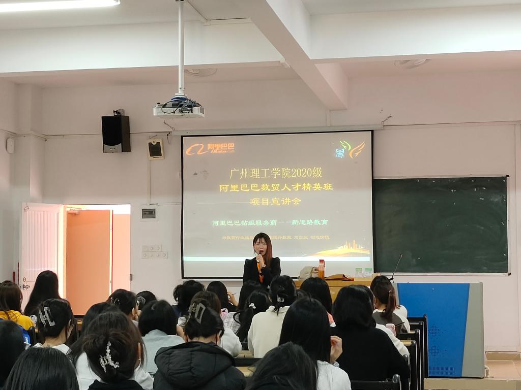 宣讲会上,马经理首先介绍了新思路教育科技有限公司的企业文化、业务范围、荣誉及合作单位等基本情况,让在座同学对新思路教育科技有限公司有进一步的了解。随后她对数字贸易行业进行了分析与解读,重点介绍其数字贸易精英班的人才发展项目,如商英、国商专业就业方向和岗位要求,以及阿里巴巴数贸精英班人才发展项目。这些都有助于学生了解行业趋势和就业方向,明确个人职业规划和发展目标,提升综合素质和就业竞争力。