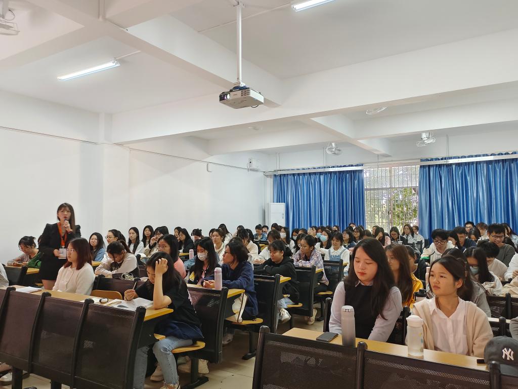 为帮助学生与企业搭建交流平台,11月24日,我院在7栋208课室开展广州新思路教育科技有限公司宣讲会。出席本次宣讲会的有我院辅导员方书靓和新思路教育科技有限公司企业部总监赵晓笛、经理马倩倩。外国语学院20和21级同学参与此次宣讲会。