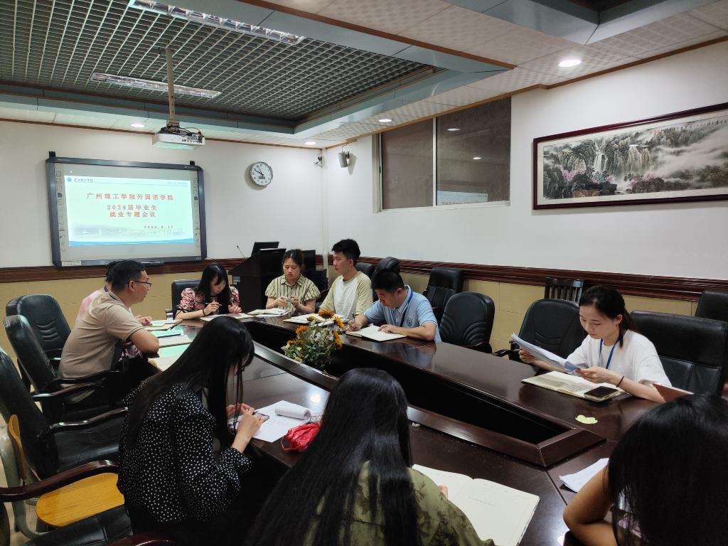 为进一步落实2024年毕业生就业工作的相关安排,更好地推进我院就业工作和毕业生离校工作的开展,外国语学院于6月13日在7-322召开2024届毕业生就业专题会议。外国语学院党总支副书记蔡俊及全体辅导员出席会议。