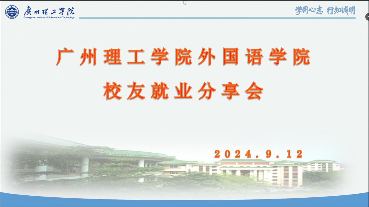 为增强校友与母校之间的联系和凝聚力,发挥优秀校友的标杆作用,激发同学们的学习动力,为我院学子实现高质量就业奠定基础,9月12日晚,外国语学院在惠州校区1-511,1-514开展线上校友就业分享会。本次分享会邀请了多位优秀校友。我院2024级新生全体参与。会议由许娟娟老师主持。