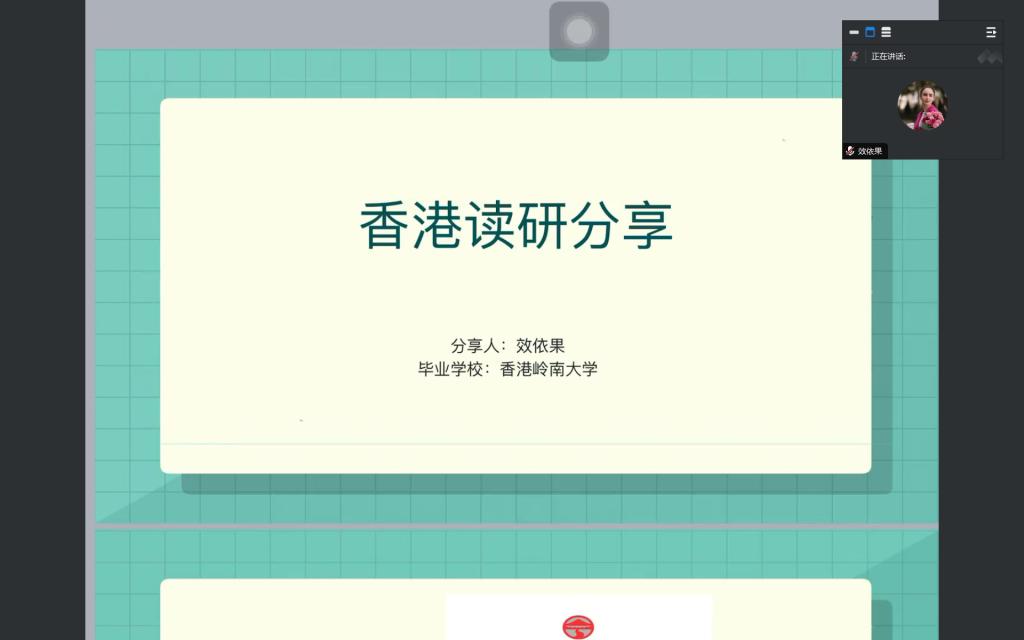 冯院长首先为参会同学介绍了三位与会嘉宾,并对她们的到来表示热烈欢迎。随后,效依果为同学们带来了香港读研分享。她首先给同学们分享了她的个人经历,提醒同学们绩点和雅思的重要性,鼓励同学们努力学习,取得好成绩。随后她介绍了几所香港的学校,并详细解读了申请港校的条件和流程。最后,她鼓励同学们要相信自己,只要坚持不懈,终将遇见优秀的自己。