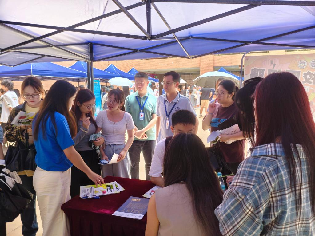 本次供需见面会活动迎来了众多带着丰富岗位资源的招聘单位,涵盖了教育、外贸、翻译、跨境电商等多个与外国语专业紧密相关的行业领域。活动现场气氛热烈,我院学子穿梭于各个展位之间,手持精心准备的简历,自信地与招聘人员交流,向招聘人员展示自己的能力和潜力,并认真询问他们有关岗位要求、薪资待遇、企业文化等方面的问题。