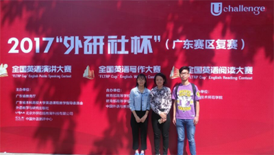 外研社杯”全国英语写作大赛(广东赛区)由广东省教育厅、广东省本科高校大学英语课程教学指导委员会、外语教学与研究出版社主办,教育部高等学校大学外语教学指导委员会、教育部高等学校英语专业教学指导分委员会、中国外语教育研究中心合办。赛分校级初赛、省市复赛和全国决赛三个阶段进行,通过层层选拔,多角度考查选手的写作阅读水平、思辨能力与文化素养。我校选手取得的殊荣离不开她两个多月的精心准备和指导老师从初赛选拨、集中培训、考场模拟等多个环节进行细致悉心指导。