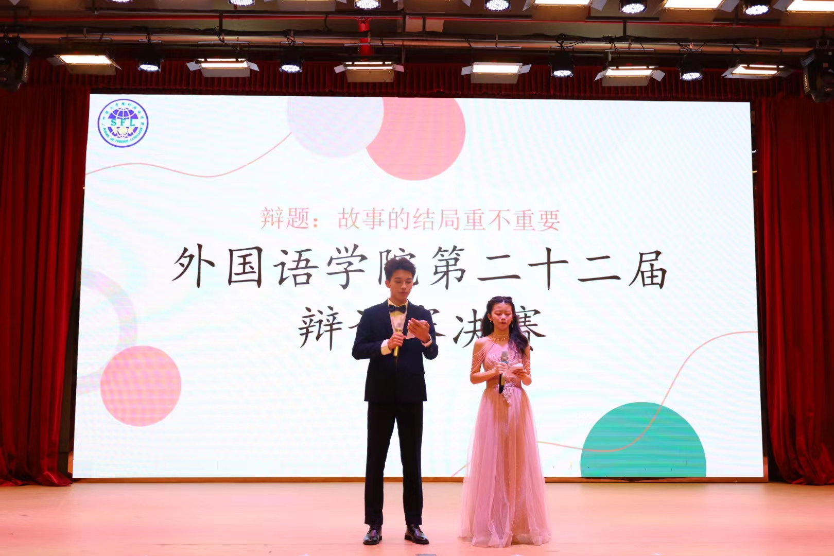 2023年3月8日,外国语学院第二十二届辩论赛决赛在13栋报告厅如期举行,进入决赛的有22英语4班和22英语5班。