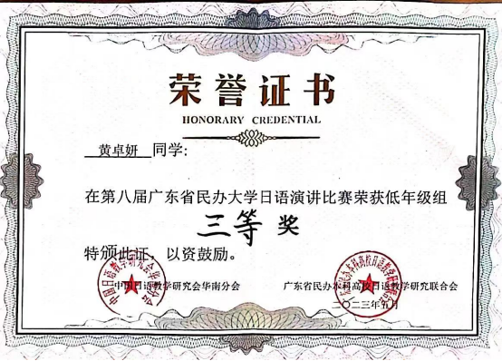外国语学院学子在第八届广东省民办大学日语演讲比赛中荣获三等奖
