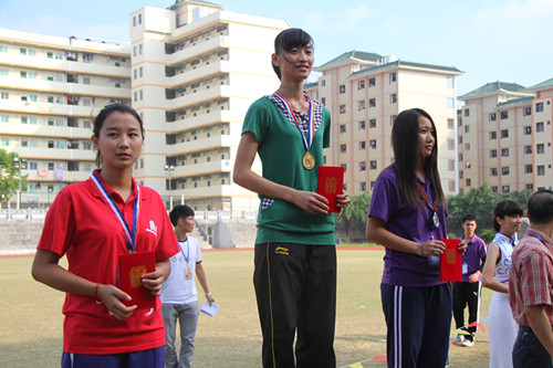 来自本英高翻114班的邓楚娜在此次校运会中表现尤为出色。她获得女子组跳高冠军,这已是她连续三年获得跳高冠军,并多次破学校纪录,她还摘取女子组三级跳远桂冠,成为名至实归的大赢家。而本英语137班陈佳凯更是外语系男生的骄傲,就荣获得男子组800米亚军和400米第四名。