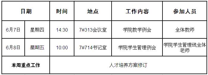 外国语学院第十四周周程安排表