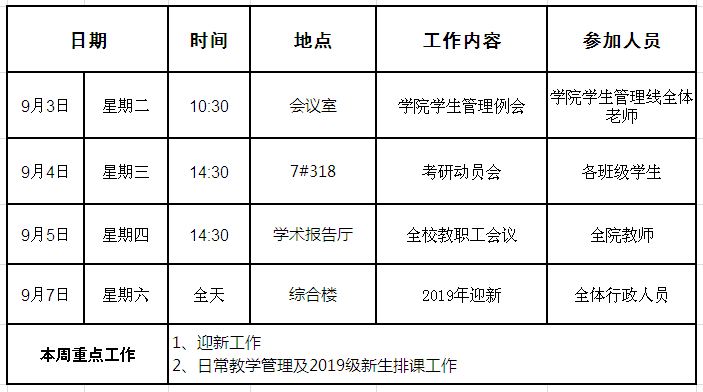 外国语学院第二周周程安排表