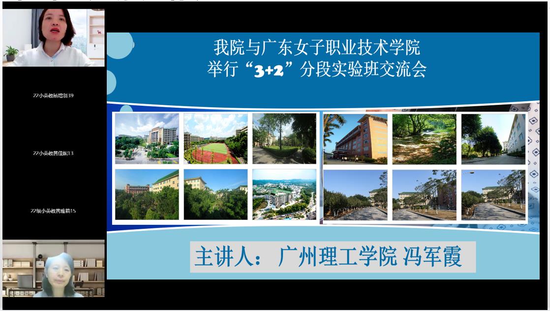 11月27日,我院冉海涛副院长、英语系主任冯军霞及优秀学生代表一行5人与广东女子职业技术学院小学教育2022级三二分段实验班举行云端见面会。