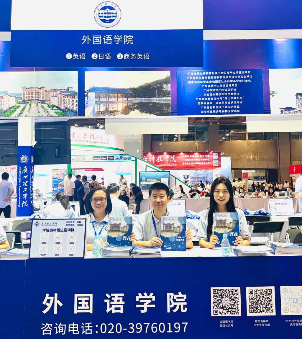 6月27日,广州理工学院外国语学院在广交会展馆成功举办了高考招生宣传咨询会。本次咨询会旨在向广大考生和家长全面展示学院的教学实力、专业特色、就业前景及校园生活,为即将步入大学的学子们提供一个深入了解学院的机会。