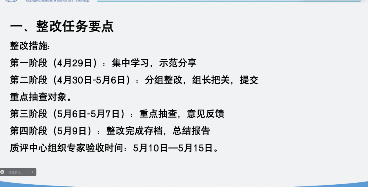 会议共分为三部分:整改任务要点、示范大纲分享、专家意见分析。冯院首先为参会人员详细介绍了整改任务要点,并强调了修订教学大纲的重要性,指出这是学院教学改革的重要一环,也是提高教育教学质量的必要手段。